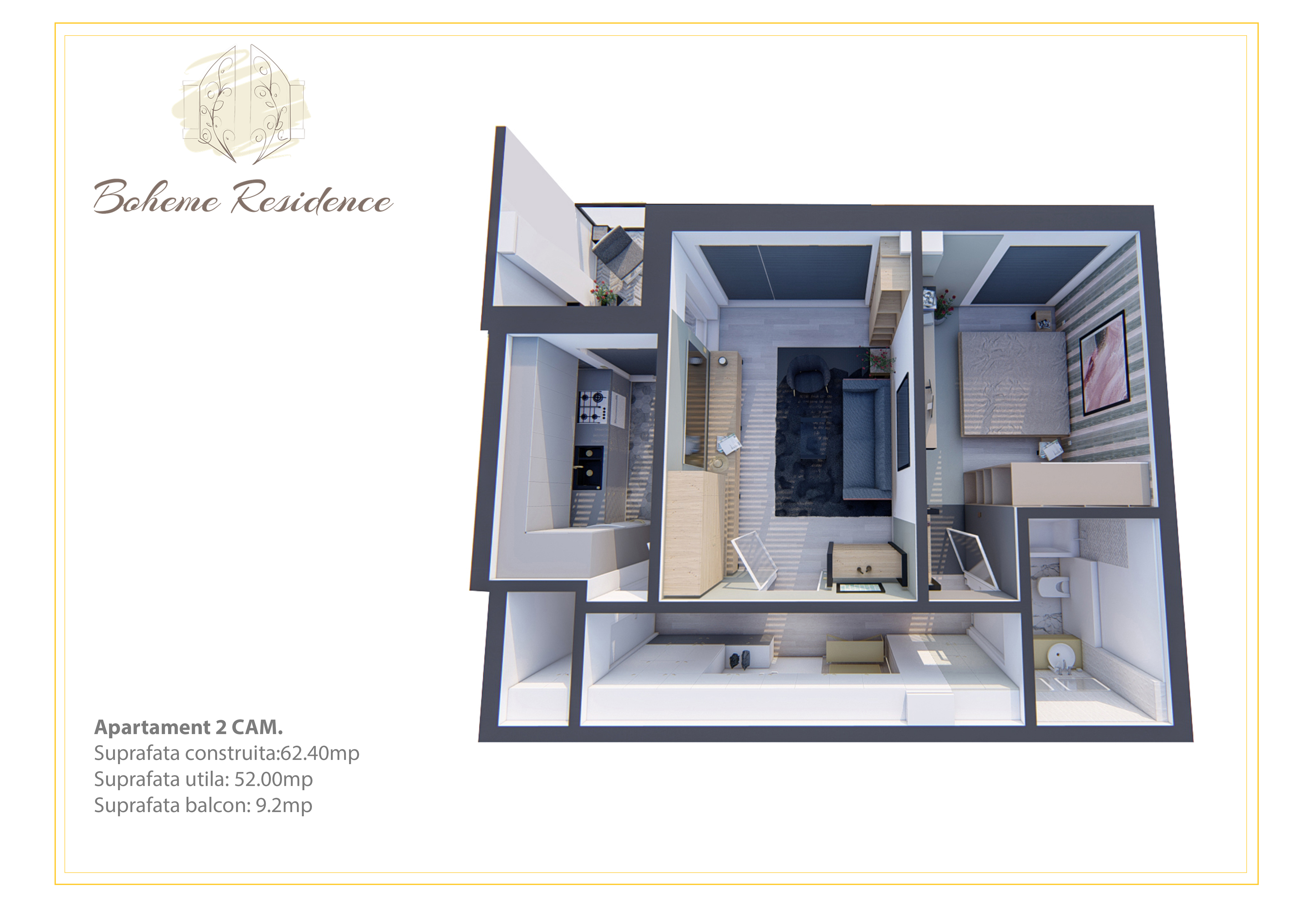 Materialele si tehnologiile folosite in proiectul Boheme Residence sunt de ultima generatie, totul pentru siguranta si confortul locatarilor. Ansamblul de locuinte cuprinde 3 tronsoane iar apartamentele sunt de 1, 2 si 3 camere. Locurile de parcare sunt suficiente pentru fiecare apartament. Ansamblul include spatii verzi comune si zone de relaxare pentru locatari. Apartamentele sunt bine compartimentate, se predau amenajate complet la cerintele clientilor, toate materialele folosite la finisaj sunt de calitate si mult bun gust.
